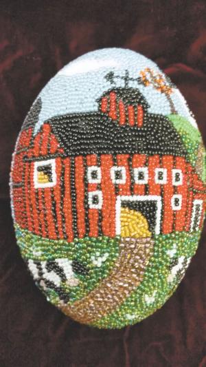 With experience gluing beads on eggs since 2001, she doesn’t need to start over too often these days. She takes on a variety of challenges from customers who want their pets, livestock or barns memorialized on eggs.