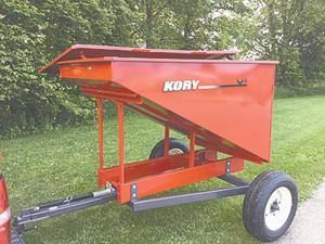 The Kory 1-ton can easily be pulled with a pickup, lawn tractor or ATV. Maple Wind Farm delivers feed in the wagon using the same pickup that moves their mobile hoop houses.
