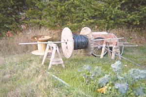 “I use electric cable spools given to us by a neighboring electrician,” explains Ramsay. “They come in a variety of sizes, up to 4 ft. in diameter. I use the largest size that one person can handle.”
