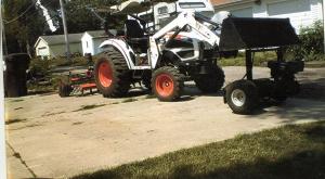 He built a rectangular frame that bolts onto the bottom of his Bobcat t