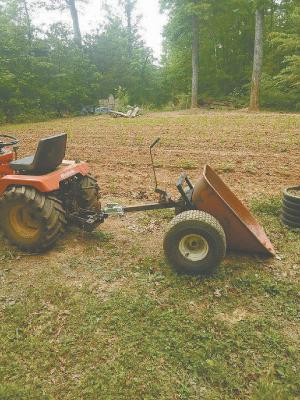 “It works really good. I use the tractor’s hitch to raise the tongue 8 to 12 in. off the ground, which causes the frame to tilt down toward the back and completely empty the bucket,” says Henson. “Once the load has been dumped, I lower the hitch, which causes the bucket to slam back down.