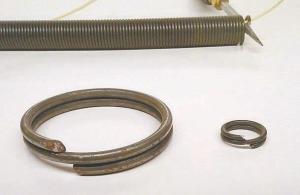 Make Rings From Springs FARM SHOP Handy Hints Making steel rings for shop projects or quick fixes is easy if you have some old springs lying around Andy Kozlowski has a foolproof method that’s fast and easy if you take the right precautions “Use protective eyewear and don’t put your fingers or anything fragile or of value between the coils of large springs ” warns Kozlowski “Broken or discarded garage door springs and others that are strong and tight can be hard to separate If one hand gets pinched in a spring it will be hard to get it out with only one free hand ” The first step in cutting one or more coils loose from a spring is to run a wire or cord through the center of the spring as a restraint It will keep the cut coil s from flying loose Kozlowski points out that metal rings are two coils thick except where the ends overlap When cutting coils loose find the existing end and then back off from that point on the coil being cut “It is customary to cut the new end on a slant like the old one but not required ” adds Kozlowski With the restraint in place identify the spot to be cut Use a screwdriver to separate the coils to provide access to the cutting target “The bigger the screwdriver the more room you will have to work; however too large and it may stretch the coils leaving space between them ” says Kozlowski He suggests using a Dremel tool with a steel cutting disk If creating a one-coil ring simply make a lateral cut the length of the spring to release the desired number of rings “You can use a Dremel an angle grinder with a cutting disc a pair of bolt cutters or even a hacksaw for this ” says Kozlowski When first cut away the ends will not line up due to the coiling of the spring The cut also leaves a space between ends; however both problems are easily solved “Use 2 screwdrivers to bend the ends further out of alignment until they clear each other ” says Kozlowski “Using a pair of groove joint pliers compress the ring until the space between ends is as small as desired Then use the screwdrivers again to realign the ends ” Kozlowski suggests using a bench vise on larger spring coils He adds that if using the rings to hold items like keys add them to the ring before compressing and aligning ends Rings to be closed permanently can be tack welded at the joint For a full set of pictures and more detail visit http://www instructables com/id/Rings-and-Split-Rings/ Contact: FARM SHOW Followup Andy Kozlowski 61 Old Readingsburg Rd Califon N J 07830 ph 908 399-8886; andyk_00@yahoo com