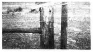 It consists of a lever handle that pivots back and forth on a pivot at the top of a piece of angle iron that bolts to the side of a fencepost. A loop of steel that fits over the top of the gate post is held to the side of the lever handle by a bolt that can be screwed in or out to tighten up the lock. The bolt can also be easily removed and replaced with a longer or shorter bolt as needed. We make two models - one that can be padlocked for $25 and one that can't for $20. (Jim Hutton, Jimlock, 4614 Co. Rd. LL.5, Ida/la, Colo. 80735 ph 303 354-7230)