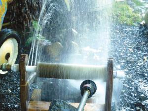 “Centrifugal” Water Filter Cleaner FARM HOME Miscellaneous Dirty water pulled in from Lake Champlain was rapidly clogging up the “whole house” water filters at Stephen Zonies’s Vermont home so he built his own centrifugal water filter cleaner It consists of a piece of perforated pvc pipe and a standard pressure washer “Our home has 3 different 12-in long filters in it to capture particles ranging from large to small and we were spending a lot of money to replace the filters when they got dirty ” says Zonies “The filters sell at hardware stores for about $10 apiece and with dirty water the cost to replace them can add up quickly “The problem is that in late summer the lake becomes pea green with algae and churned-up sediment from wind storms The water starts to smell and taste bad and the sand and grit can clog up a new filter in just 3 to 4 days Sometimes we were able to use only 100 to 200 gal of clean water before we had to replace the filters “I tried rinsing out the filters in a bucket but that didn’t remove all the particles trapped inside My homemade centrifugal cleaner cleans filters good enough that I can make them last for several more weeks depending on how dirty the water is ” The 1-in dia perforated pvc pipe is suspended horizontally off the ground on a pair of wooden brackets The pipe goes all the way through the filter and is connected to a garden hose The other end is capped shut Zonies drilled a series of tiny holes about 1/4 in apart into one side of the pipe He positions the pressure washer with the nozzle pointed at a slight angle to the filter and down toward the bottom of the filter Then he turns on the hose water and starts the pressure washer “I slowly work the pressure washer from one end of the filter to the other ” says Zonies “The high pressure water coming out of the nozzle just touches the bottom of the filter which causes the filter to spin at about 200 rpm’s The centrifugal force cleans the filter from the inside out The holes in the pipe provide water for back-flow pressure to flush particles out of the filter The water from the pipe and pressure washer has already been filtered so it’s clean ” he notes Contact: FARM SHOW Followup Stephen Zonies 754 Stagecoach Road Waitsfield Vt 05673 ph 802 496-2434; drsteve@madriver com