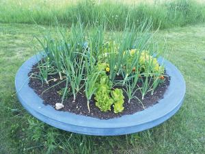 Satellite Dishes Made Into Raised Bed Gardens FARM HOME Food My wife Lois and I repurposed a pair of old 6 and 8-ft dia satellite dishes into raised bed gardens The dishes set on top of rear tractor tires which are smaller than the dishes making it easy to mow grass around them The photo shows a 6-ft dish The edge of the dish stands about 18 in off the ground Both dishes already had a couple of holes in them and I drilled more holes to drain excess water I placed a layer of gravel on the bottom of the dish then installed garden cloth and added topsoil This summer we were away for a few days so I used pvc posts and netting to keep deer away The soil at the center of the dish is 6 to 8 in deep but shallower toward the edges Next year we’ll fill the dish with more soil so it will be deeper Mark and Lois Julin 25515 Raleigh Hill Rd Shevlin Minn 56676