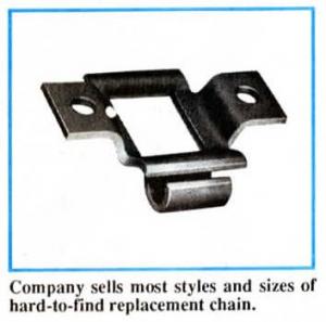 "We get a lot of calls for No. 55 steel detachable chain for grain elevators, which is getting hard to find. We carry it in stock.. For manure spreaders, our best seller is a chain that's a step above original chain in quality, yet sells for about the same price you'd have to pay locally for the lower-quality chain. We're also big in replacement sprockets. We replace original cast iron sprockets with steel flame cut sprockets which last longer and cost less. If we don't have the size and shape you need, we'll try to make it."