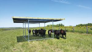 “We build our livestock shade structures out of galvanized pipe that weighs about 3 1/2 lbs. per foot, so they’re not going to blow over even in windy conditions and rainstorms,” says Kevin Dockery of Klene Pipe Structures. “I’ve been here 15 years and have never had a customer say theirs has blown over and we’ve sold them in just about every state, including Alaska.”