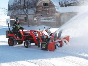 When Tony Negen found two walk-behind snow blowers on clearance for only $460 for the two of them, he decided to mount both blowers on front of his Kubota loader tractor.
