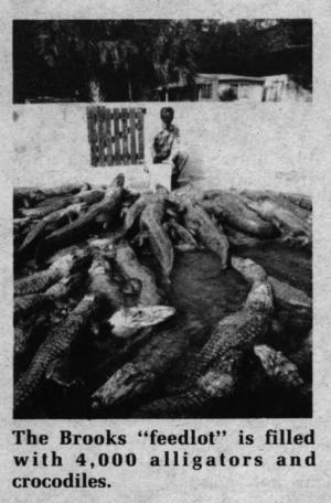 According to Shane, alligators grow better in warm, sunny weather. Under normal Florida conditions, a gator will grow to market size (six to seven ft.) in three to four years. "We plan to convert some pens into hot houses," says Shane, "which will speed their growth quite a bit. We'll keep the water temperature in the middle 80s and they'll eat all the time ù and grow twice as fast."
