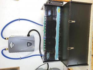 In a typical hydronic system, it’s a complicated closed-loop system pumping heated water through the loops in the floor. The Hunt system includes an accessible 10-gallon tank that contains submersible, variable-speed pumps inside the tank.