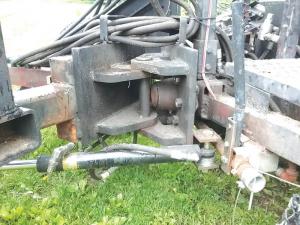 Petersen purchased a hydraulic steering mechanism designed for a Massey Ferguson tractor to control the rams on the articulation. He modified it to use a steering wheel from an old riding mower. He also added a counterweight basket to the rear to hold several concrete silo staves.