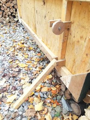 I made this gate stop for the wooden shed where I keep my firewood. It consists of a wooden “stop” that pivots down to the ground to hold the gate in place. When not in use, it pivots up and is held in place by a bolt attached to a round wood handle. (Richard Mountcastle, Rockville, Ind.)..........