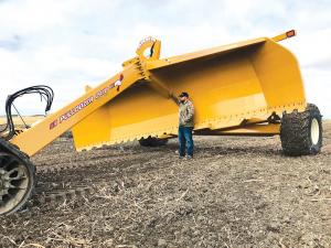 “Pulldozer” Blades Replace Big Cats MISCELLANEOUS EQUIPMENT Earth Movers Bridgeview Mfg pull-type dozer blades can dig ponds bury rocks cover brush piles and level and shape fields with a high horsepower tractor eliminating the need for a big Caterpillar or other dozer The fixed-blade and adjustable wing “Pulldozers” can do what big dozers and earth scrapers do at a much lower cost The 1810 Pulldozer has a working width of 18 ft and a transit width of 18 1/2 ft It requires from 250 to 400 hp The 12-ft center blade with two angled wings holds from 15 to 18 cu yds of dirt as it’s removed from one area to be spread in another The blade can be tilted up to 45 in over the 18-ft width and has a cutting depth of up to 10 1/4 in An XL version has a retractable trencher that can rip a trench up to 35 in deep The 2410 has a 24 ft working width and a 24 1/2 ft transit width It requires from 400 to 600 hp and has an 18-ft center blade with two angled wings The U-shape can remove and retain from 20 to 25 cu yds of material The blade has a maximum depth of 12 in and can tilt up to 45 in over its 24-ft width The 2410XL with retractable trencher has a maximum trenching depth of 42 in The Pulldozer Transformer is also available in 18 and 24-ft models with XL retractable trencher versions They require from 300 to 400-hp tractors Folding wings independently adjust from -10 degrees to +40 degrees while axles telescope and retract for field or road use Raise both wings and the Transformers can cut flat bottom channels Raise one wing and lower the other and they can form a terrace With both wings lowered the Pulldozer Transformers can form a crown Both models have a maximum blade depth of 15 in The 1870 has a working width of 18 ft with a 48-in center blade Depending on the angle of the 8-ft wings the 1870 can remove from 9 to 18 cu yds of material It has a blade tilt range of up to 45 in over its full width Transit width with folded wings and retracted wheels is only 10 ft The XL version can rip a trench up to 35 in deep The 2470 has a working width of 24 ft with an 18-ft center blade and a transit width of 13 ft 11 in It can remove up to 25 cu yds with fully opened wings and offers a maximum blade tilt of 45 in over its full width The XL version with its retractable trencher has a maximum ripping depth of 42 in Both the Pulldozer with fixed blades and the Pulldozer Transformer are available with serrated blades They double the cutting pressure per inch of blade and improve both cutting and depth control over smooth edge blades Bridgeview Mfg markets its Pulldozer and Pulldozer Transformer through dealers in the U S and Canada Contact local dealers found on the company website for product prices Contact: FARM SHOW Followup Bridgeview Manufacturing Inc Box 4 Hwy 22 Gerald Sask Canada S0A 1B0 ph 306-745-2711; bmi@sasktel net; www bridgeviewmanufacturing com