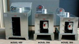 “The Bryan Furnace” is a self-contained hot air system that operates similar to a window air conditioning unit. Combustion is contained in a fireproof enclosure located outside the building thus eliminating ashes, fumes, and the possibility of accidential contact with a hot surface inside the home. It removes air from the building, heats it to a predetermined temperature, and returns the heated air back into the building. The unit takes up to 30” logs and will burn 8 to 12 hours with one filling.