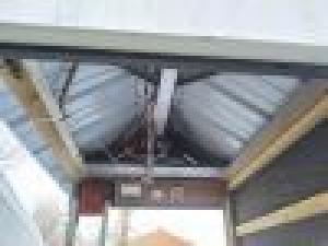 Altenweg used a discarded ice fishing house frame made from 1 1/2-in. wide, 12-ga. Unistrut hangers. It’s covered in see-through vinyl panels and a roof of tin. The only wood is old decking for a floor.