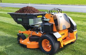 The Mower Mule has a manual dump featuring a latching lock to keep the tub in place while driving. Landscapers and homeowners use the Mower Mule to move and dump leaves, mulch, grass, compost, firewood, sawdust, etc. It comes with a mesh leaf shield that attaches to the back to prevent debris from falling onto the muffler.