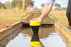 Simple Water Tank Level Monitor LIVESTOCK Feeding Equipment A few Nebraska ranchers are using an Australian water tank monitor they discovered at last year’s Husker Harvest Days Like Nick Seymour the Australian inventor the ranchers know through cellphone alerts that their cattle always have water Seymour developed the “Water Rat” with one priority in mind - keep it simple And it is Move a magnet on the outside to turn on the enclosed switch of the completely sealed device and throw it in a water tank Ballast keeps the bobber-like unit upright when floating in water If the tank goes dry for some reason the accelerometer sensor sends a cell message when the Water Rat tilts 30 degrees It also sends two messages daily that all is well “If you have a deeper body of water you can tie it to a tether at the distance you want it to alert you ” Seymour adds He initially created it to help his father operate a cattle ranch in Australia There are other monitoring options for big holding tanks but solar pumps can quit and lines that fill the water troughs can get plugged or break The Water Rat has GPS and can be moved to different tanks whenever the cattle are moved Seymour notes that cattle are initially curious about the device and lick and push it but they can’t really damage it The Li-Soc12 battery inside lasts 1 to 2 years The Water Rat costs about $400 USD and each device requires an annual cellular subscription $100 Seymour is setting up a dealer network in North America that’ll be available through his website “People like the Water Rat because they can go away from the farm and have no worries about their cattle having water ” Seymour says and it saves time and energy by eliminating the need to check water tanks every day Contact: FARM SHOW Followup Farmo Suite 16 / 7- 9 Leeds St Footscray Victoria 3011 ph 03 9854 6432; help@farmo com au; www farmo com au