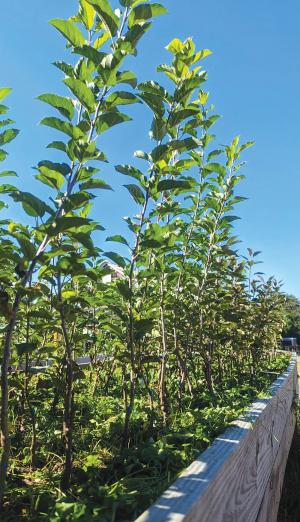 Once grafted with rootstock planted in air-pruning beds, intervention is limited. None of his trees are sprayed.