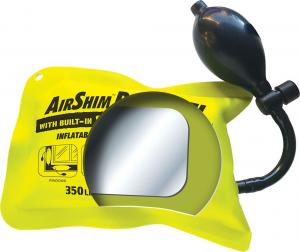 AirShim Pro STEEL is lab-tested and certified by SGS to support 350 lbs. for an hour without leaking. The bag measures nearly 6 in. by 8 in. and is approximately 1/8 in. when deflated and 2 5/8 in. when fully inflated. Weighing just 5 oz., it comes with a one-year warranty.