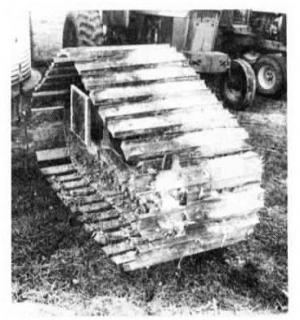 Burt bolted the channel iron pieces to the original track, which added about an extra foot of width to the track. He says the modification doesn't affect operation of the tracks and has the benefits of boosting flotation while at the same time reducing compaction.