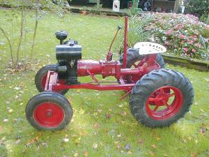 Papke explains that Elmer Pond got into the tractor business by assembling Speedex garden tractors for his brother Harold. In 1946, Elmer and his son Cecil began designing, building and marketing their own tractor, which became known as the Pond lever steer because of the lever that moved front to back instead of a steering wheel.