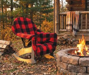 Available in green, red, gray, blue or pink plaid, the patent-pending design fits Adirondack chairs, camping chairs and stadium seats. It features a waterproof side and a cozy fleece side for warmth, making it a great choice for backyards, picnics, travel, camping, sporting events and tailgating.