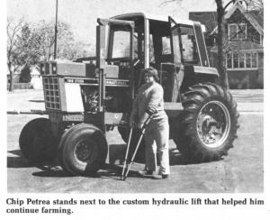 Chip Petrea's accident happened in September, 1978 when his legs got caught in a hay baler and had to be amputated above the knee. A year after the accident on his farm near Luka, Ill., Chip was milking cows from his wheelchair and managing to do some driving of a small tractor. But, he realized that the big work had to be done with a big tractor ù which he couldn't get in and out of with artificial legs and crutches.