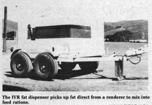 The fat dispenser is designed so that livestock and poultry producers, or feed manufacturers, can pick up fat direct from a renderer or other distribution point, and mix it into rations and feed supplements. It is claimed that the unit has the flexibility to add the fat to portable, upright, or horizontal mixers, or mixer-mills.