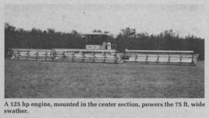 "We have picked up a 30-bu. crop at 4¢ miles per hour with no loss over the back," he says. "In fact, with our big swather, we have saved the cost of one combine in our operation."
