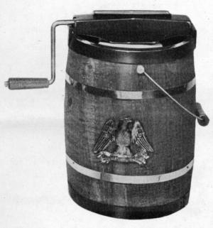 Suggested retail cost of the hand operated models is $28.95 for the Williamsburg, $26.95 for the Pioneer and $25.95 for the Springfield. All models _ are available with electric motor drive in 4 or 6 qt. capacity. The 6 qt, electric model comes with a seethrough lid and retails for $46 to $48, depending on the style and type of wood used. Prices include an ice cream recipe book which comes with each Dolly Madison ice cream maker.