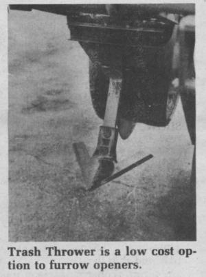 "It's a low-cost alternative to furrow openers and other trash cleaners that can cost as much as $100 more per row than our unit," says Couser. "With the Trash Thrower, we have better seed spacing, especially in soybeans. And, the sweep leaves a clean area for banding herbicides."