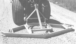 It's equipped with 8-ft. wide, reversible and replaceable front and rear blades. The front blade cuts high spots, directing material to fill in the whole width of the rear blade before spilling over the channel. Material is churned as it moves from front to rear so ruts and potholes get filled.