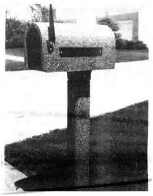 If you're looking for a mailbox that's both distinctive and durable, take a look at this new Bohlmann-built concrete mailbox. It features a regulation standard size (20.5 in. deep and 9 in. wide) metal mailbox covered with an inch-thick shell of rein-forced concrete laced with decorative stone.