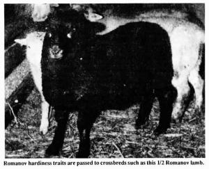 "Although most wool sells for about 70 cents a pound, we get $3.00 to $5.00 a pound for our Romanov wool, both from purebreds and from 1/2 crossbreds. Hand-spinners prize it for its unique luster and they say it's extremely spinnable. And although the Romanovs are not as heavily muscled as other traditional breeds, cross-breeding produces a hybrid with better muscling and a better overall carcass."