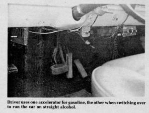 The M & W kit, installed in a 460 cu. in. Ford pickup engine, consists of two separate carburetors installed in place of the pickup's original single 4-barrel carburetor. Alcohol, piped from a tank in the pickup box, runs through a regulator and into the alcohol carburetor. A simple electric fuel line switch on the dash board changes the engine from one fuel and carburetor "on the go."