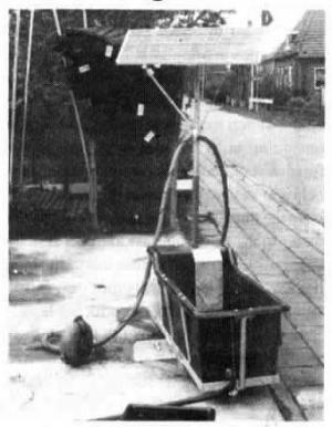 The waterer is designed to pull water out of shallow ditches or hard-to-reach rivers and streams. It's got a floating pump that's powered by a pair of 12-volt batteries mounted at the front of the trough. The batteries are recharged by a panel of solar cells on a metal post. The trough is heavy plastic. Waterer can also be used to pull water out of a well if fitted with a different kind of pump. Sells for $1,800.