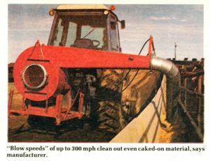 "We're finding new uses for it every day," says the manufacturer."We can reverse it and use the vacuum to clean out grain bins and elevator legs. We haven't tried it for drying or cooling grain, but it could probably handle smaller batches. We've just designed a deflector for it so it will blow material in one direction rather than in all directions. The 22 in. fan can be slowed down to blow fly spray onto cattle."