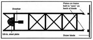 He made the 7-ft. blade itself by cutting apart a junked county road grader.