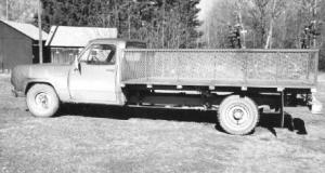 I needed a vehicle to haul lumber in so I re-moved the bed from my 1976 Chevrolet 3/ 4-ton pickup and replaced it with a home-built 12-ft. long, 7 1/2-ft. wide bed. It's equipped with 2-ft. high screen sides and has a treated plywood floor. I used 2 by 10 channel iron to lengthen the pickup frame. I also had to lengthe