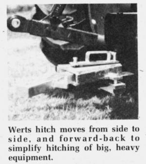 Ordinarily, says Werts, the hitch would not interfere with use of the tractor's 3-point hookup. If it does, the Snap-Hitch can be quickly removed by taking out three bolts. Sells for $150.