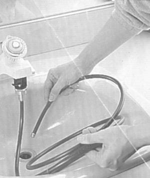 One end of the drain blaster screws securely to your sink faucet, then you slip the "jet" end into the backed up drain. When you turn the water on, it turns into a powerful, high velocity drain cleaner with two side jets that flush the pipe walls while the main front jet forces the blockage through.