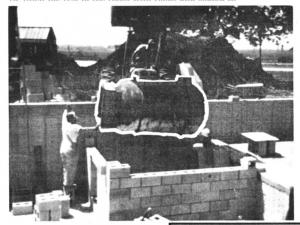 After placing the tank in the basement room, building the chimney, and filling the room with the limestone rocks, he poured a 4-in. thick concrete roof over the room to both seal the room and serve as fire protection. The side walls are made of 8-in. concrete blocks.