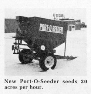"The big advantage for the PortA-Seeder, of course, is acres covered per hour. If you figure in stops to fill the hopper, you are looking at 4 to 5 acres per hour with a 12 ft. drill, versus 15 to 20 acres per hour with a seeder," says Allen. He adds that, so far as he knows, no one has tried to seed soybeans with a Port-O-Seeder.