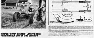 Once he had the strips perfected, he discovered that there can be times when they alone wouldn't do the job if the vehicle was severely mirred down in mud or snow. "There is a limit to the coefficient of friction that can be obtained between two free surfaces - even crawler tractors, for example, will spin their tracks at times," he points out.