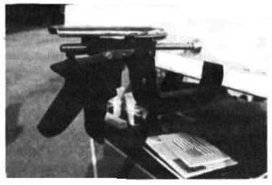 My one-hand C-clampis really handy to use. It lets you clamp objects together by simply squeezing a trigger and works similar to a caulking gun. The handle and clamp are made from fiberglass-reinforced nylon. A steel rod extends from the C-clamp and fits into the handle. It works much better than conventional C-clamps which require use of two hands. I'm looking for a manufacturer. (Harold Hobday, 10530 Arno Rd., Galt, Calif. 95632 ph 209 745-1739)