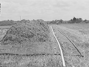 The silage is then dumped onto the 15-ft. span from Wright's 5-ton Richardton dump wagon starting about 10 ft. from one end. Subsequent loads are dumped so they overlap, forming a continuous windrow of 8 loads in the first row.