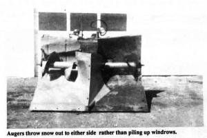 Home-Built Double Auger Snowblower MISCELLANEOUS EQUIPMENT Miscellaneous 15-1-22 "It works better than a snowplow and faster than any commercial snowblower on the market. It's the handiest thing you ever saw," says Harold Stoudt, Hamburg, Penn., who used junk parts to build a 5-ft. wide "double auger" snowblower that throws snow 25 ft. out to each side.