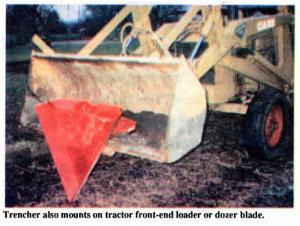 It'll work right through rocks (up to 6 in. dia.), roots (up to 3 in. dia.) and standing water. "It's great for making quick drainage ditches in flooded fields, light tiling, ditch cleaning, laying irrigation pipe, cable laying (with attachment), and many other chores," says Jefferson, adding that the scooped-out front of the ditcher lets it also be used like a small bucket when working close to buildings, etc.