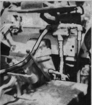 The first step in the conversion was to take the power steering pump off and throw it away. He then bought a 1-gal. hydraulic flow diverter valve which "splits" 1 gal. per minute off the 24-gal. per minute auxiliary hydraulic line. He mounted the valve on a metal plate under the tractor seat.