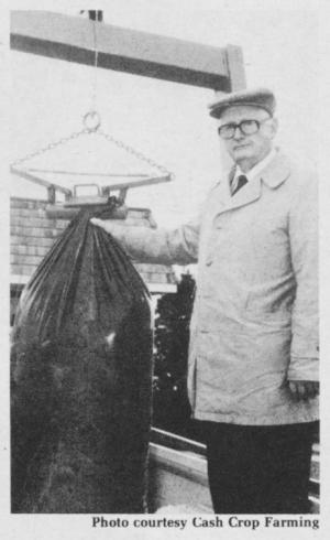 Bagging your own bulk fertilizer may offer an economical new option to using self-unloading hoppers, while reducing storage and handling problems at the same time. This is the view of John Read, retired Canadian fertilizer dealer, who has developed a 500-pound plastic bag and a special clamp to lift the bags with a front-end loader or forklift.